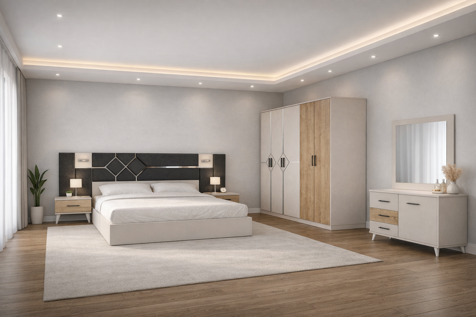 Turkish bedroom set UAE, modern bedroom furniture Dubai, beige bedroom set UAE, Turkish furniture UAE, bedroom set with wardrobe and dressing table, modern bedroom set UAE, affordable bedroom set Dubai