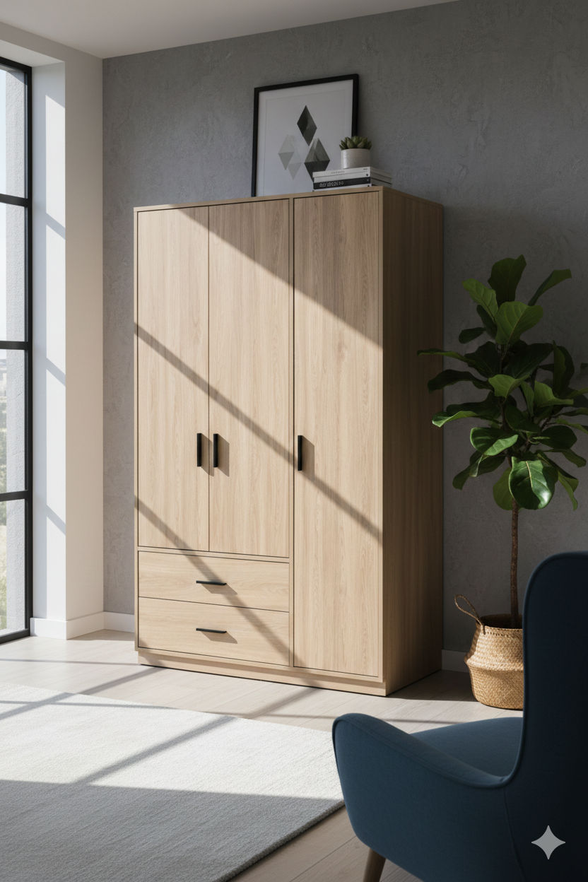 This modern wooden wardrobe offers a smart and practical storage solution for everyday use.